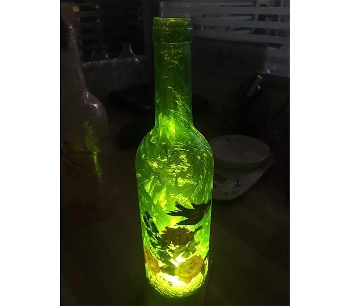 蒙砂酒瓶是在制品玻璃上,粘附一定大小面積的玻璃色釉粉,玻璃瓶廠經(jīng)過580~600℃的高溫烘烤,使玻璃色釉涂層凝結(jié)在玻璃外表,并顯現(xiàn)出具有與玻璃主體不同顏色的一種裝飾辦法。粘附玻璃色釉粉,可用排筆涂刷,亦可用膠輥滾涂。經(jīng)過絲印加工,能夠得到蒙砂面的樓空圖案。 其辦法是:在玻璃制品外表上,絲印一層由阻熔劑構(gòu)成的圖案紋樣。